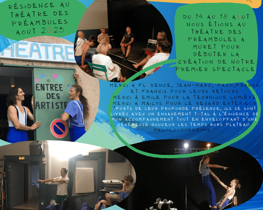 On est d’abord aller flirter sur la Vague à Bonds, une jeune association créée par deux êtres humains magnifiques : Jocelyn et Taïna. Déjà forts des ateliers clown&danse qu’ils proposent (et bientôt en Colombie !), ils s’engagent également désormais sur les chemins de la création. Maïlys a accompagné leur résidence au Théâtre des Préambules, afin de leur apporter son regard, exigeant et chirurgical, sur la mise de scène et la direction d’acteur : ils s’en sont saisis avec courage et brio ! Leur création, déjà riche de rythmes et de contrastes avant son arrivée, est pleine de promesses qu’il nous tarde de voir évoluer ! Un grand Merci à eux pour ce délicieux accueil.